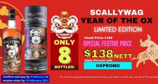 Scottish leading family-owned, family-managed distiller, blender and bottler Douglas Laing & Co today announced the release of SCALLYWAG YEAR OF THE OX LIMITED EDITION. Out of a total 1,688 bottles for the entire world, only 300 have been allocated to Singapore. wineguru.com.sg has secured 8 bottles just for you. The normal Recommended Retail Price …