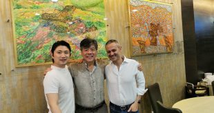 From left, Eric Li, CH’NG Poh Tiong and Stephane Soret at Jade Palace Singapore on Monday 19 October 2020. Behind them are, from left, The Wind Castle (2010) and The Camellia Village (2010) by Singapore “National Treasure” TAN Swie Hian Stephane Soret hosted lunch yesterday – Monday 19 October 2020 – …